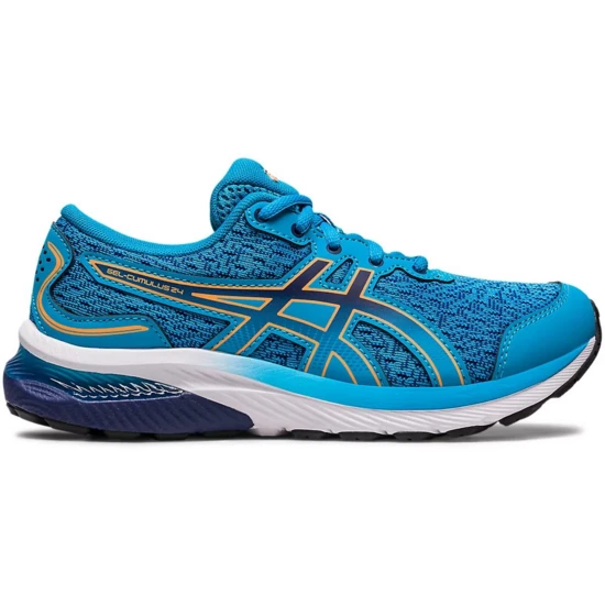 Der Schuh GEL-CUMULUS? 24 GS (Kinder ab der 5. Klasse) ist ein vielseitiger Laufschuh für junge und aktive Füße. Ein innovatives Mesh-Obermaterial verbessert die Atmungsaktivität, um die Füße über den Tag kühl zu halten. Mesh-Obermaterial; GEL?-Technologie-Dämpfung; Integrierte EVA-Mittelsohlen-Dämpfung; Nähte im Zehenbereich und robuste Außensohle aus Gummi verbessern die Strapazierfähigkeit